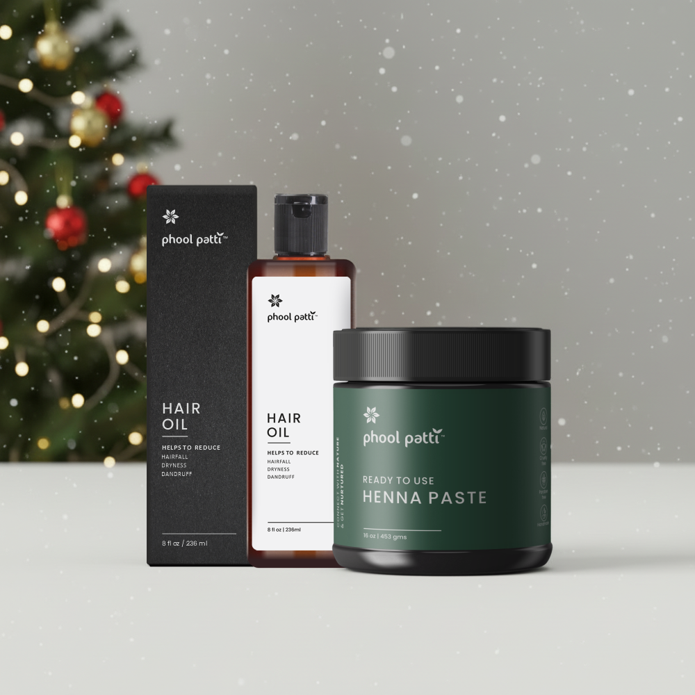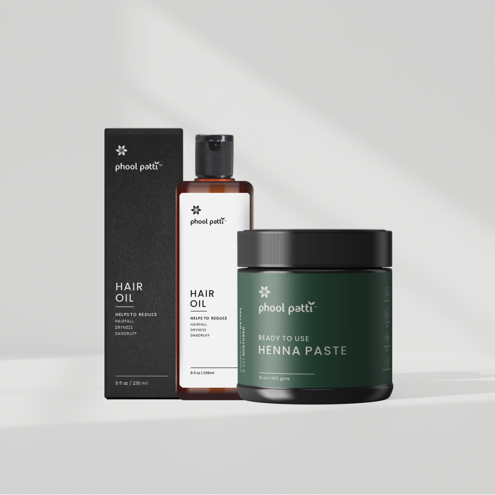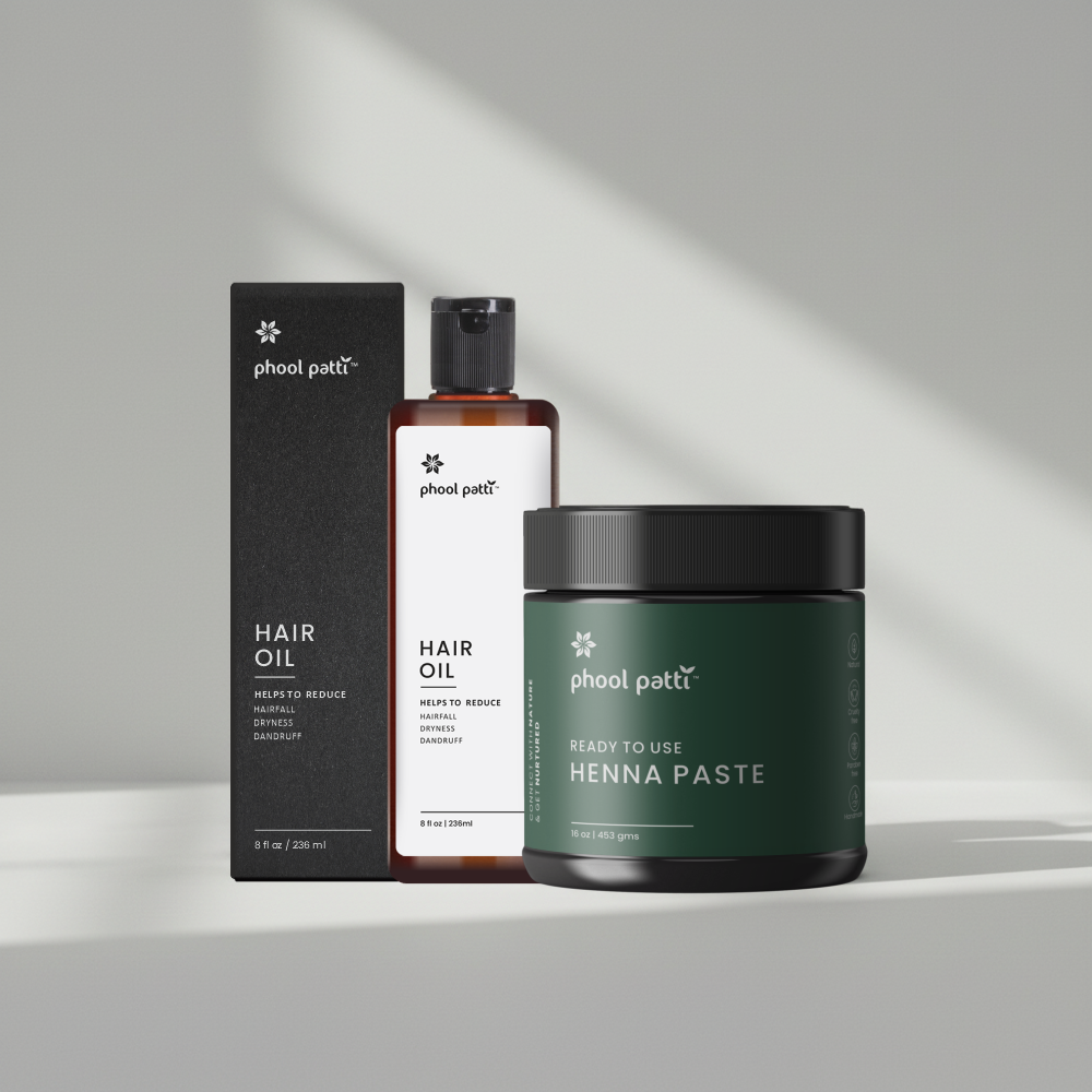 Perfect for those looking to switch from harsh, chemical dyes to a more mindful ritual, our combo pairs Phool Patti’s nourishing hair oil with ready-to-use henna paste for a complete at-home hair care ceremony. Use the hair oil to prep and replenish your scalp before or after henna, and enjoy softer, shinier, more resilient hair with every use.